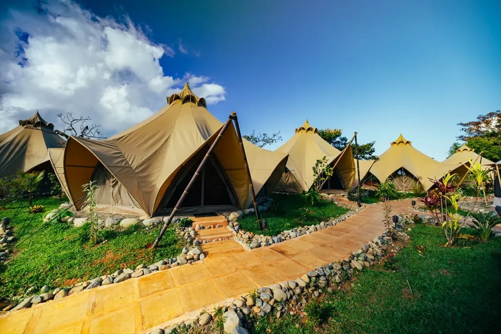 Dalyviai apsistoja gamtoje įrengtose glampingo tipo palapinėse, kurios suteikia komfortą su kokybiška patalyne ir patogumais, išlikdamos arti džiunglių aplinkos.